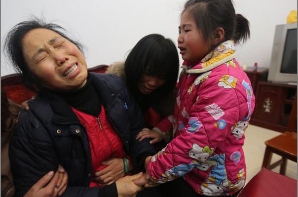 湖南省娄底市新化县上梅镇北渡中心小学因保护学生遇难校长妻子康桂梅伤心不已