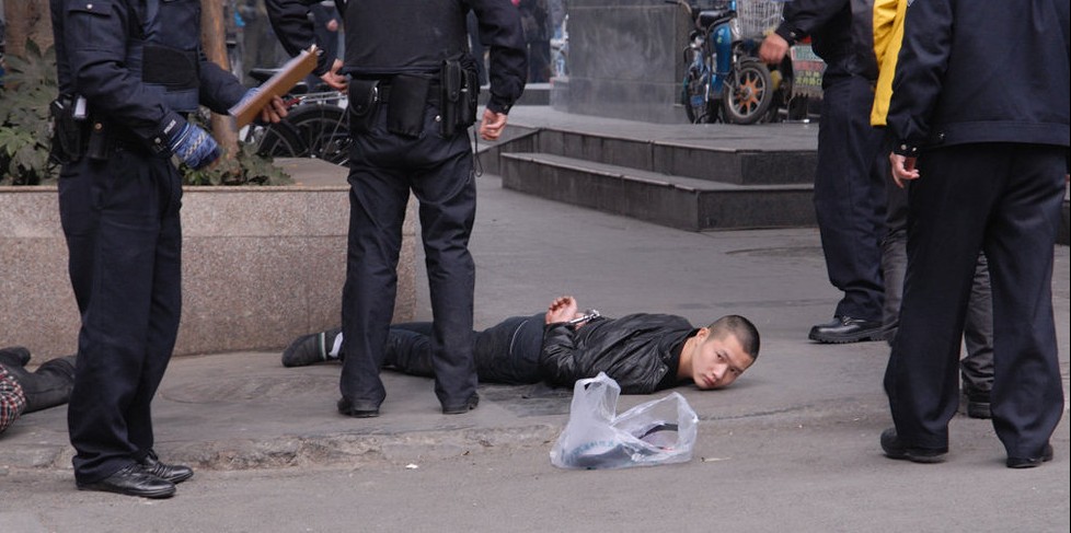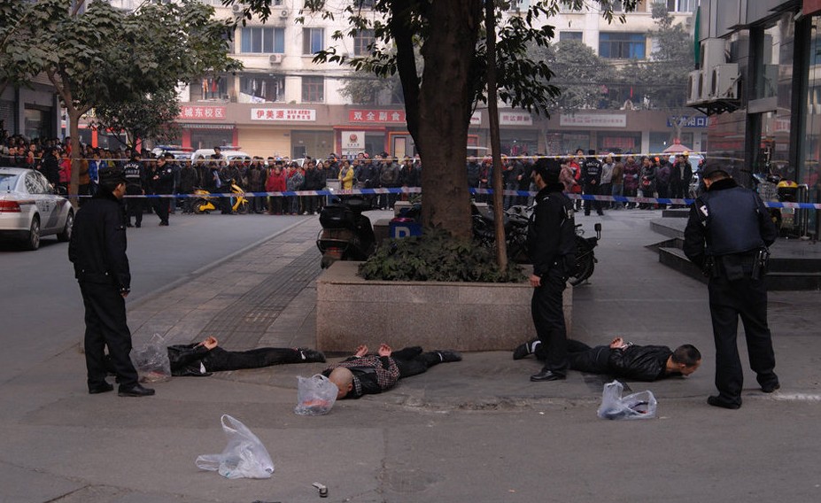 成都两伙人带枪冲突 警方街头抓人