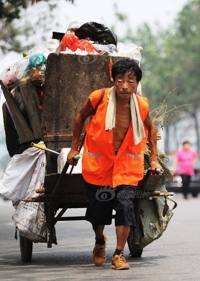 今年58岁的慈成富是一名普通清扫工,他每天至少运走10车生活垃圾,每车400公斤,一天清运4吨,干这份工作两年半,平均每天步行9公里,工作16个小时。现在,整个小区39栋楼的垃圾都是慈师傅一个人负责清运。为了照顾病倒的老伴,他不离不弃,无怨无悔。