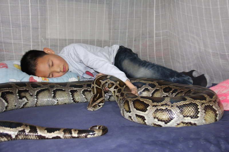 东莞一名年仅13岁的男孩阿哲则不然,他从出生几个月就开始与一条蟒蛇同睡一床。他与大蟒蛇的感情让人惊叹,也启示人们:大自然任何动物都可以成为人类的朋友。