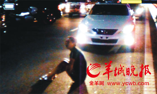 车上女子坐马路上阻挡交通 羊城晚报记者 林桂炎 摄自视频