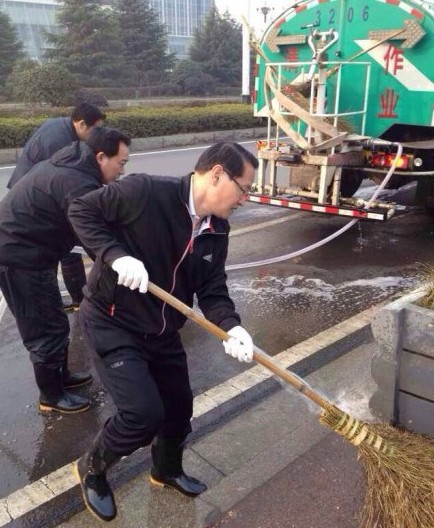据记者爆料:1月25日,湖南省委常委、长沙市委书记易炼红清晨在扫马路。